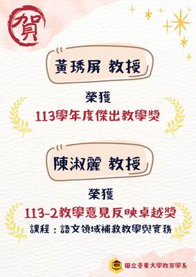 【恭賀】🎉113學年度傑出教學獎&113-2教學意見反映卓越獎